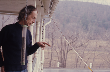 Organized by the cellist and performance artist Charlotte Moorman, the Annual Avant Garde Festivals of New York began in 1963 as open forums for the experimental music scene that was emerging out of Fluxus. One of the Fluxus founders was Bob Watts, seen here behind John Wilkes, during a visit to Watts Farm and swimming at the quarry.