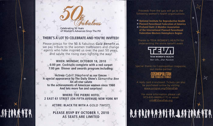 On October 18, 2010 at the Pierre Hotel in NYC, notable dignitaries, leaders in business and other prominent individuals will gather for a historic event “50 & Fabulous, Celebrating 50 Years of the Advances of Women Since The Pill.” With Cybill Shepherd hosting the event, we will be honoring influential women such as: Gloria Steinem, Kate While (Cosmopolitan Magazine) and three nonprofit organizations:The Profamil Project: Rebuilding Women’s Health Clinics in Haiti; Planned Parenthood Federation of America; and the National Institute for Reproductive Health. For the event a timeline, chronicling the amazing accomplishments of women in the past five decades, designed by Communications Strategies, Inc. will feature Diana Mara Henry's photograph of three first ladies and Bella on the page above monumental moments that happened in the 70’s.Teva Pharmaceuticals is subsidizing the event.