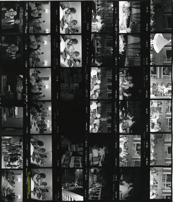 Boys and girls, a contact sheet was made in the darkroom by placing the film directly onto photographic printing paper. No editing has been done to this shoot- every photograph is preserved for you to enjoy and help identify! We know there are photographs here of Anne Klein and Vera Gawansky. Please email us now if you want to view a larger version of these.