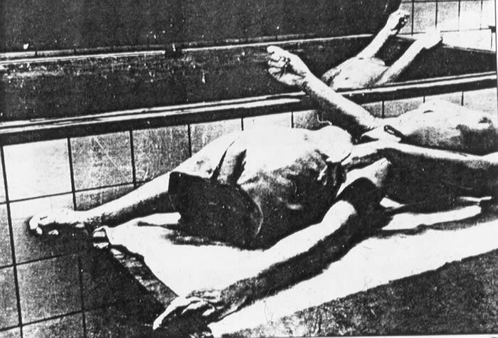 Some of the bodies were left whole, others were not. As the prisoners had been brought from Auschwitz to be gassed, the Auschwitx number tattoos are visible in some of the photographs.