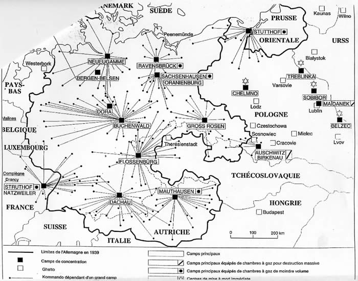 The following map, from the US Holocaust Memorial Museum website 2003, is interesting because it shows the borders of Germany absorbing the area around Natzweiler-Struthof, because Germany simply "retook" Alsace and governed it as the German region it had been between the Franco-Prussian War of 1870 and the First World War.